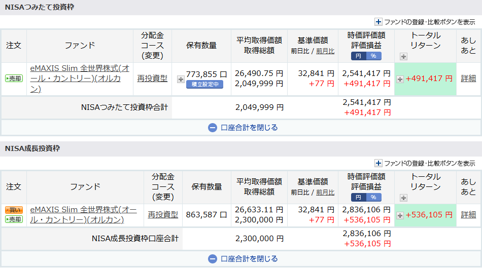 つみたて枠・成長投資枠ともに eMAXIS Slim 全世界株式の一本化。